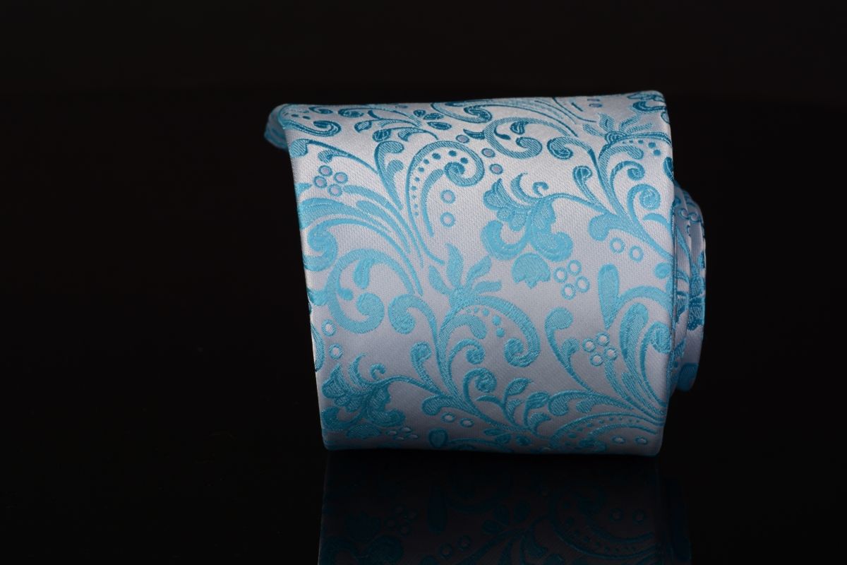 | barva kravaty: | stříbrná/tyrkysové ornamenty |