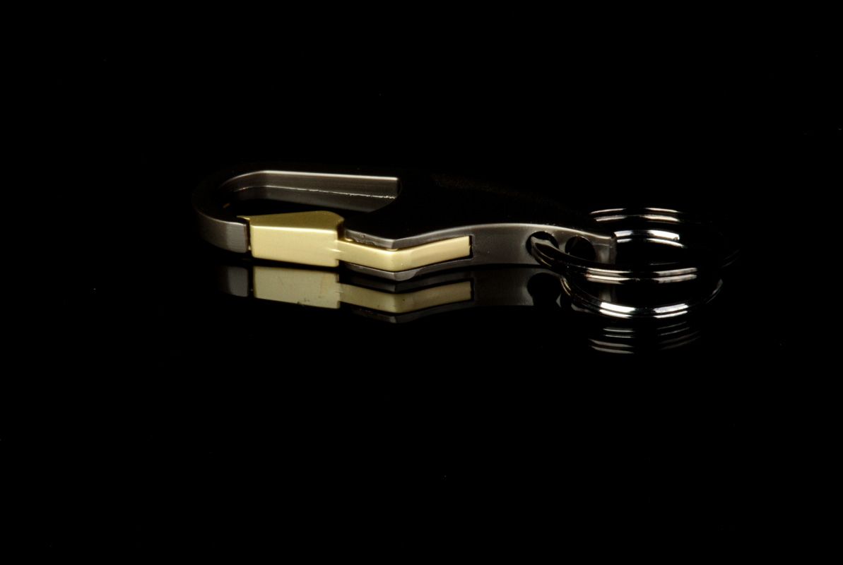 Precizní přívěšek na klíč v kombinaci kovu a PU kůže.Karabinkou můžete uchytit na poutko od kalhot,batohu nebo kde to jde nebo vás napadne.