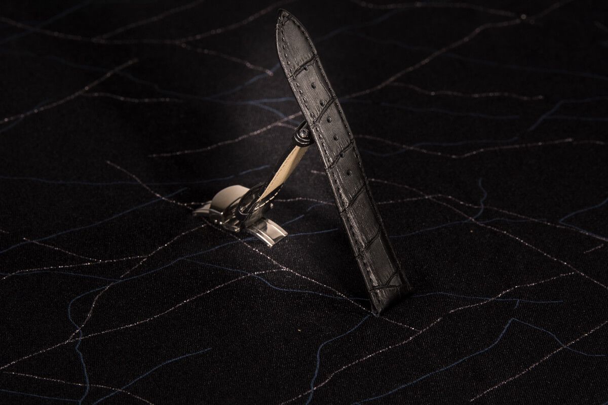 Top kvalita panský černý řemínek ZLIMSN z pravé kůže s designem krokodýla.Již nikdy pomalé zapínání do poškozené dirky.Jednou nastavíte a pak jak jste zvyklí u kovových řemínku s rychlosponou,zacvaknete.Příjemný dotyk kůže s rychlým zapnutím a vypnutím.Dodávka i s osičkami+nástroj na výměnu