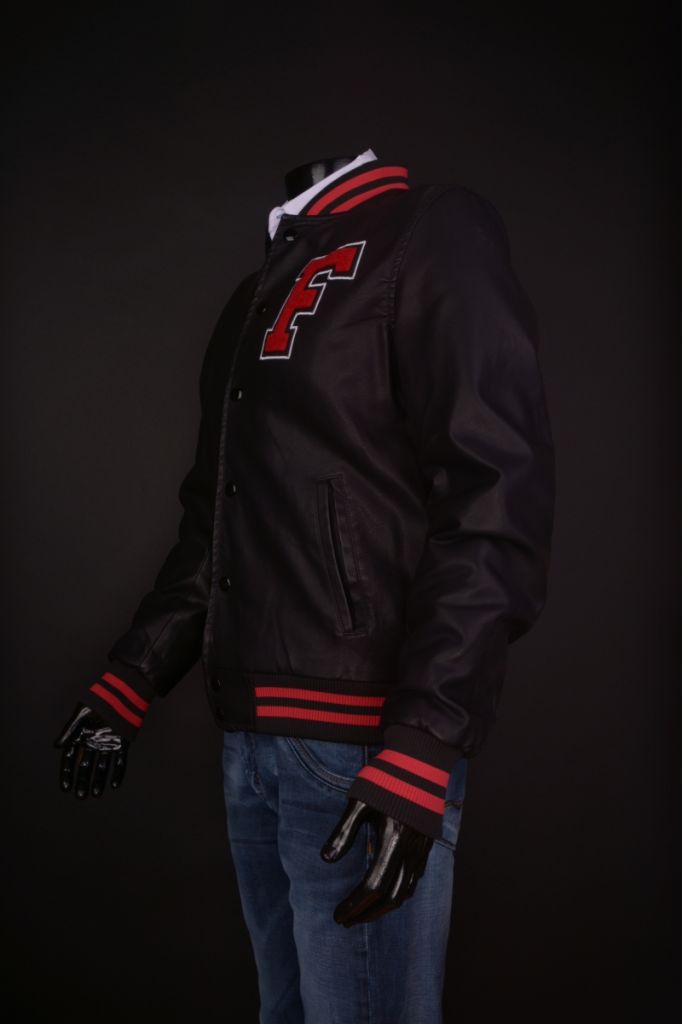 Módní trendová kožená bunda s dvěma bočními kapsami a jednou náprsní uvnitř bundy.Bunda je vhodná na jaro a podzim,ale i chladnější léto.Je problém tuto bundu rozeznat od pravé jemně vydělané kůže.Červené výšivky dodávají bundě punc originality-prostě bunda,kterou hned tak někde neuvidíte.Bunda má zapínání na patentní knoflíky.