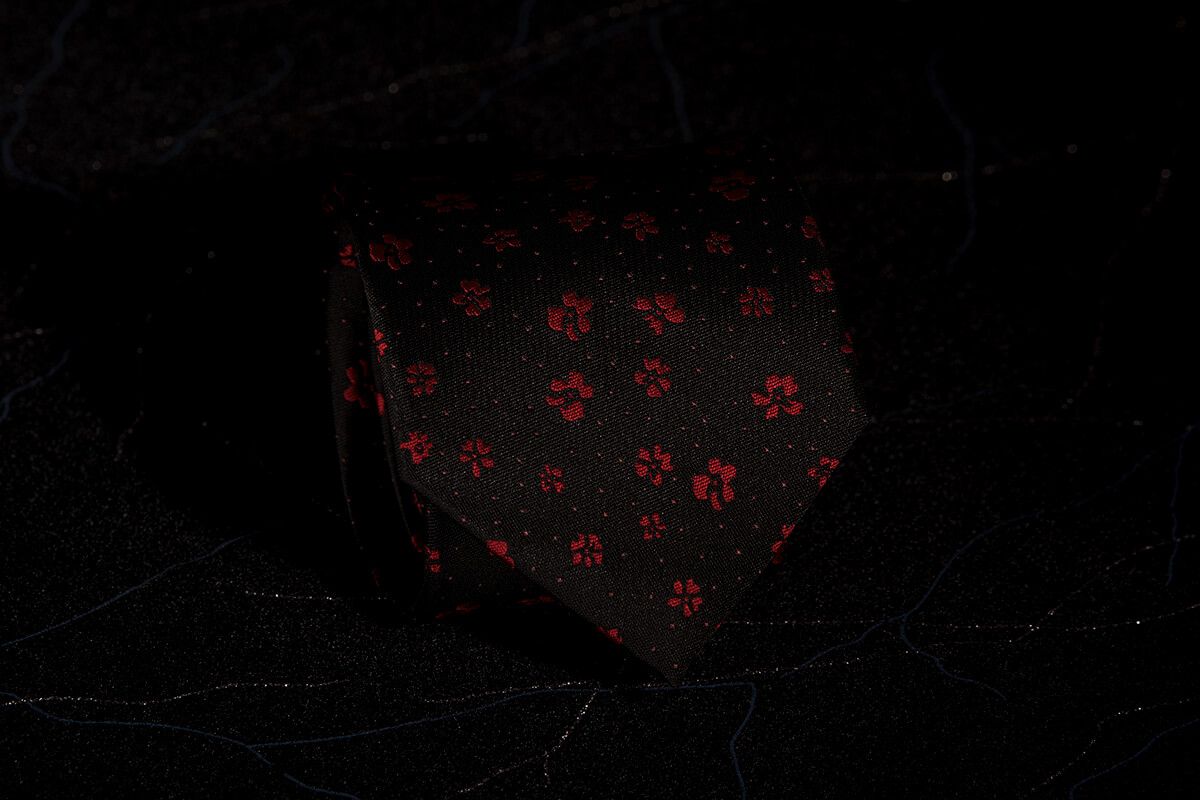 Luxusní kravata v podkladové černé barvě s červenýma květinkami je ručně šitá,a v 100% kvalitě.Buďte průkopníky v nejmódnějším trendu pánských kravat.
